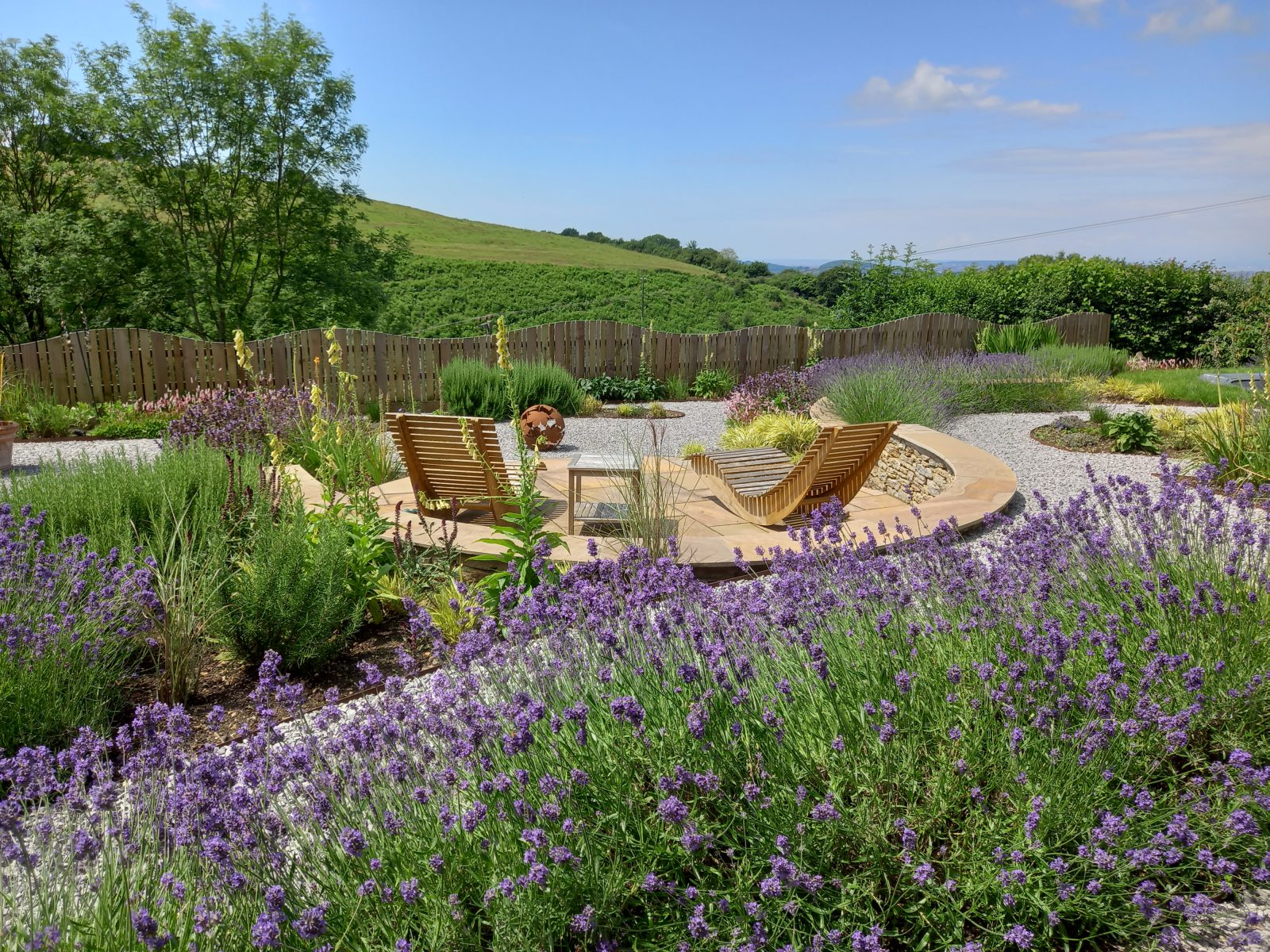A circular paved area is positioned to capture the evening sun and long sunset views beyond, making it a natural gathering point at the end of the day. Planting has been carefully selected to suit the sunny aspect, with just 12 plant varieties used and planted en masse. This restrained palette creates bold sweeps of colour, texture and seasonal interest, ensuring the garden feels cohesive, calm and vibrant throughout the year.