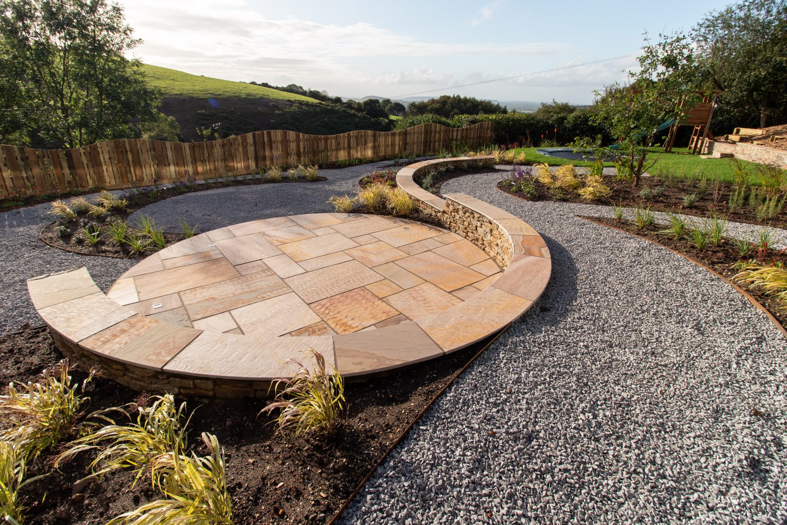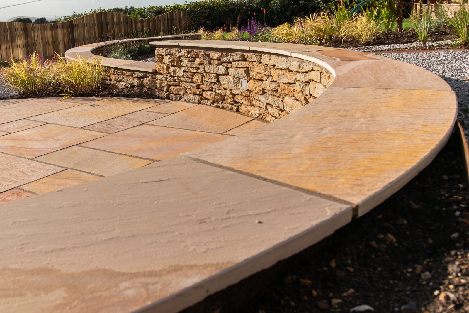 This sunny hillside garden in Shipham has been carefully brought back to life through a strong connection between materials, planting and movement through the space. Natural dressed dry stone walls anchor the garden into its setting, while warm-toned panther sandstone adds texture and subtle splashes of colour underfoot.